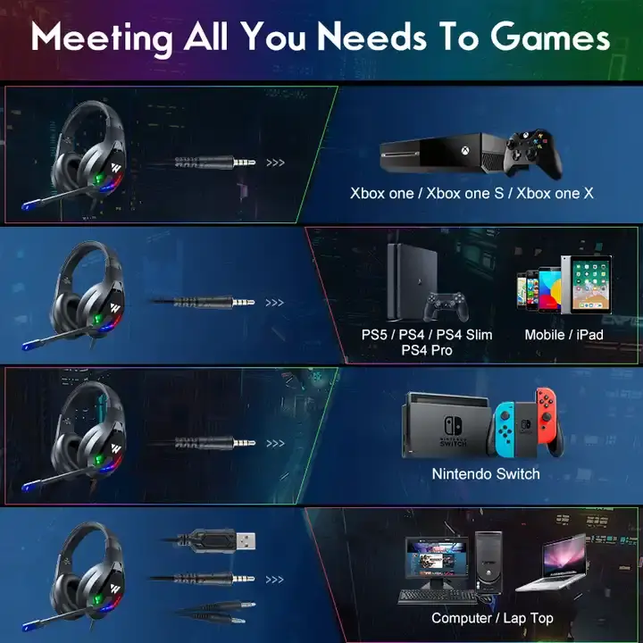 M6 RGB Colorful Cool LED Lights High Frequency And Intermediate Frequency Excellent Resolution Stylish Gaming Headset